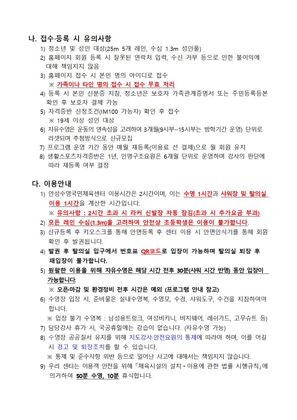 | 안성수영국민체육센터 회원 모집 안내(홈페이지 회원가입 6월 16일~ )2025-06-10 | |||