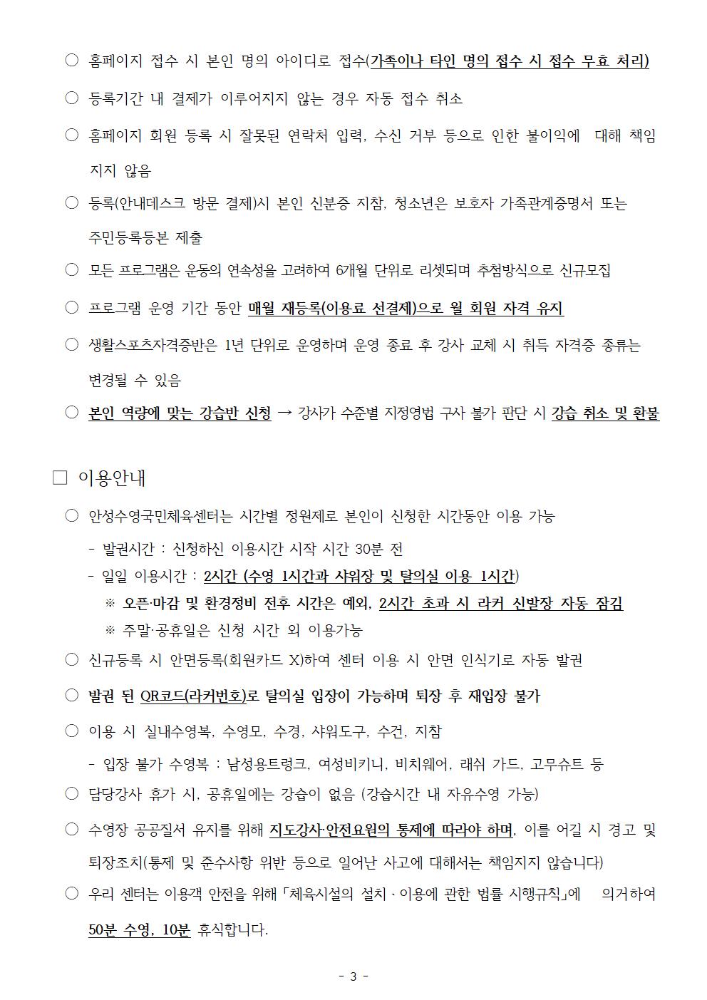 안성수영국민체육센터 이용규칙