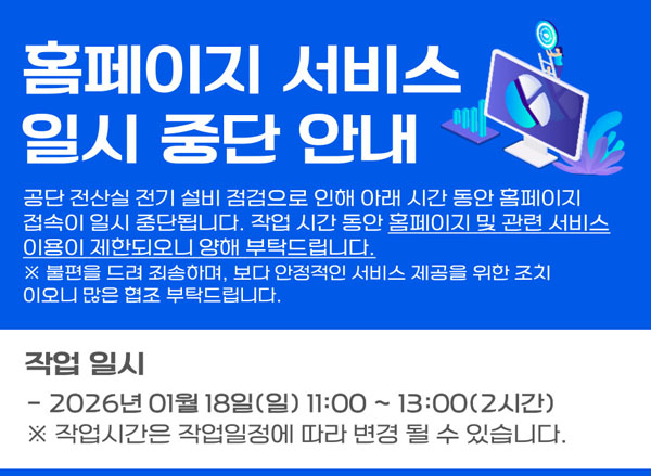 | 안성수영국민체육센터 홈페이지 서비스 일시 중단 안내(1/18 11~13시2026-01-13 | |||