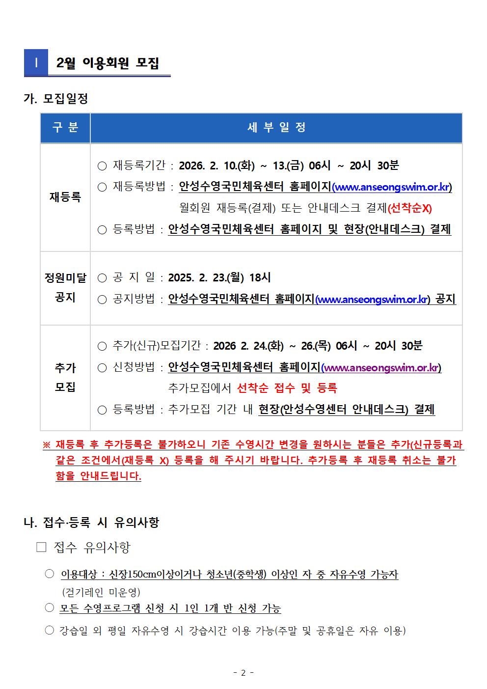 안성수영국민체육센터 이용규칙