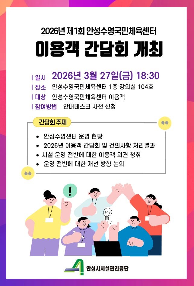 | 2026년 제1회 안성수영센터 이용객 간담회 개최 안내2026-03-11 | |||