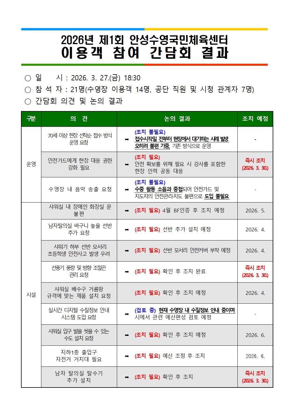 | 2026년 제1회 안성수영센터 이용객 간담회 결과 안내2026-03-31 | |||