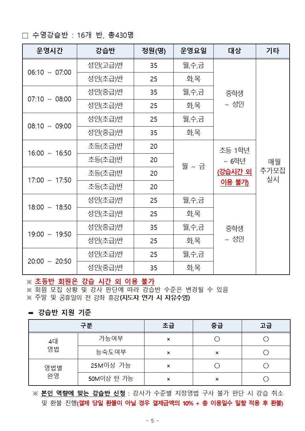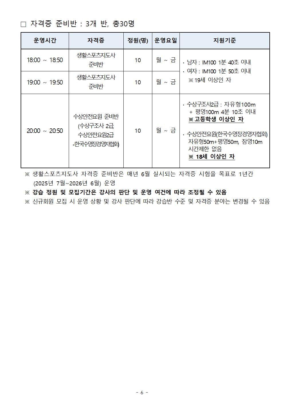 | 이전글 | 시민 생존수영교육 수강생 모집(생존+수영입문) |
