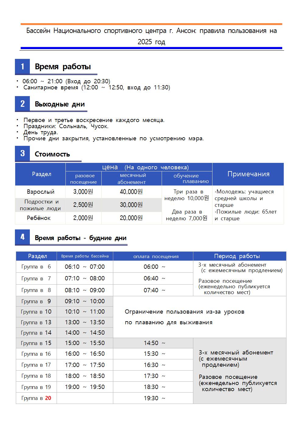 게시글(Информация для посетителей) 상세내용