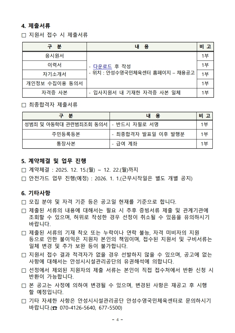 게시글(안성수영국민체육센터 수영장 안전가드 위탁자 모집 공고) 상세내용