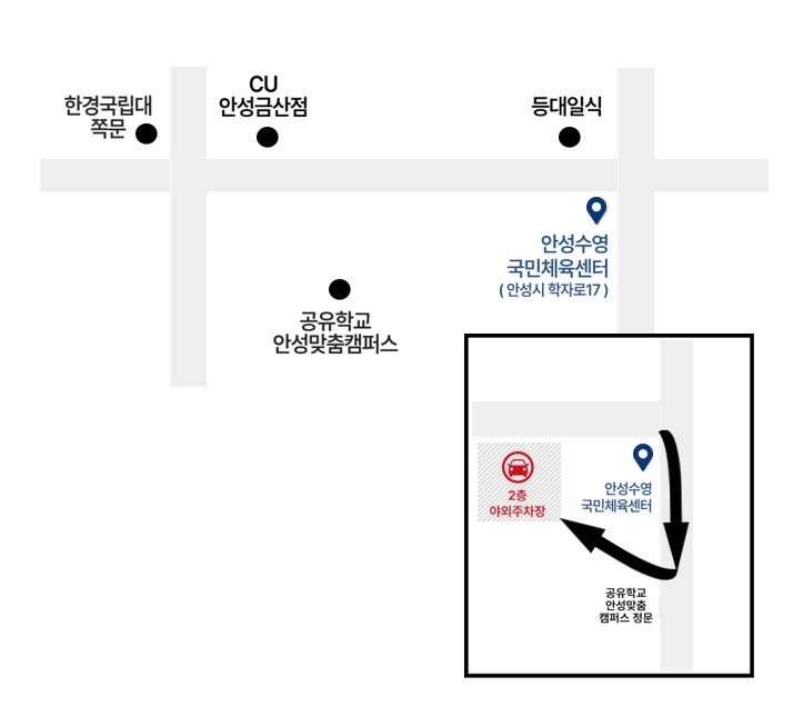※ 센터 주차장 위 미래교육지원센터 주차장 사용가능 시간 : 18:00 ~ 9:00 ※ 주차장이 협소하오니 가급적 도보나 대중교통을 이용해 주시기 바랍니다.